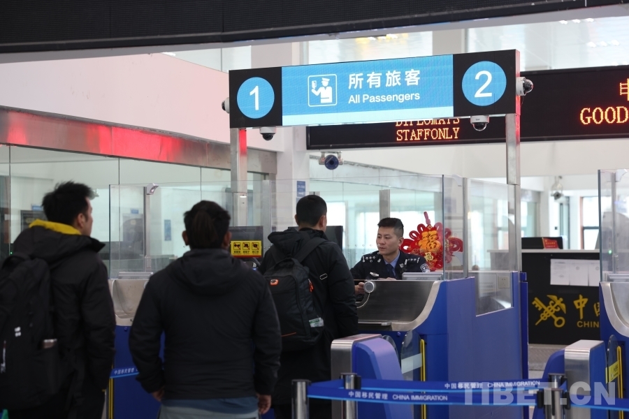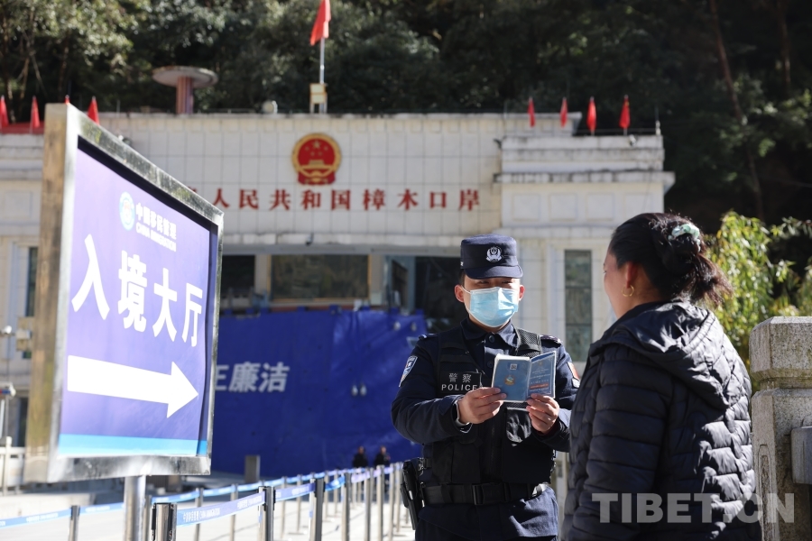 圖為聶拉木邊檢站民警對(duì)入境旅客進(jìn)行驗(yàn)放