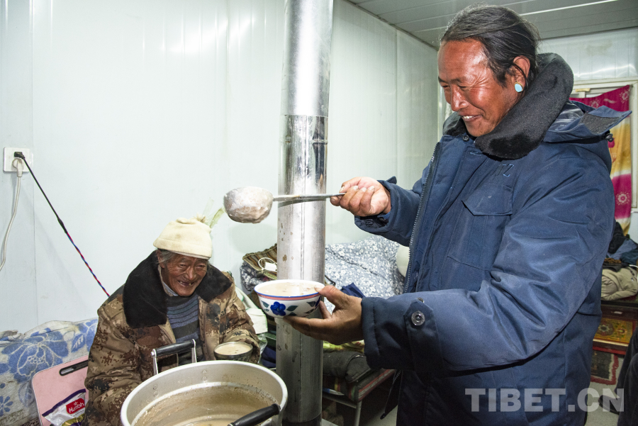 在日喀則市定日縣長(zhǎng)所鄉(xiāng)茶江村受災(zāi)群眾安置點(diǎn),我們走進(jìn)了扎西大哥的家里,品嘗一碗熱騰騰的‘古突’。
