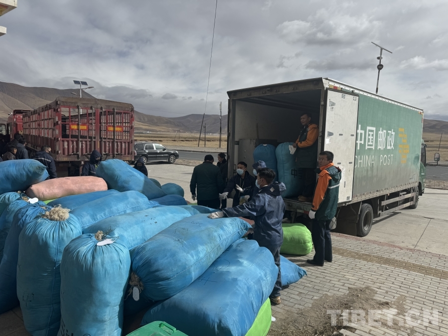 圖為治多縣牛羊絨毛正在裝車運往拉薩