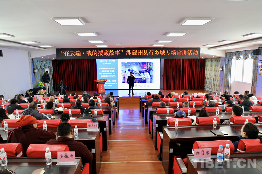 中國(guó)西藏網(wǎng)訊 2月27日上午,“在云端·我的援藏故事”涉藏州縣行宣講活動(dòng)走進(jìn)四川省甘孜藏族自治州鄉(xiāng)城縣。宣講團(tuán)隊(duì)的七位成員以“金牛幫扶聚云端 巾幗情灑扎溪卡”“那片深?lèi)?ài)的土地”“愛(ài)心支教行,共筑成長(zhǎng)夢(mèng)——為了使命的遠(yuǎn)行”等主題,滿懷深情地向當(dāng)?shù)馗刹咳罕娭v述他們的故事。