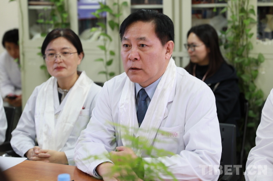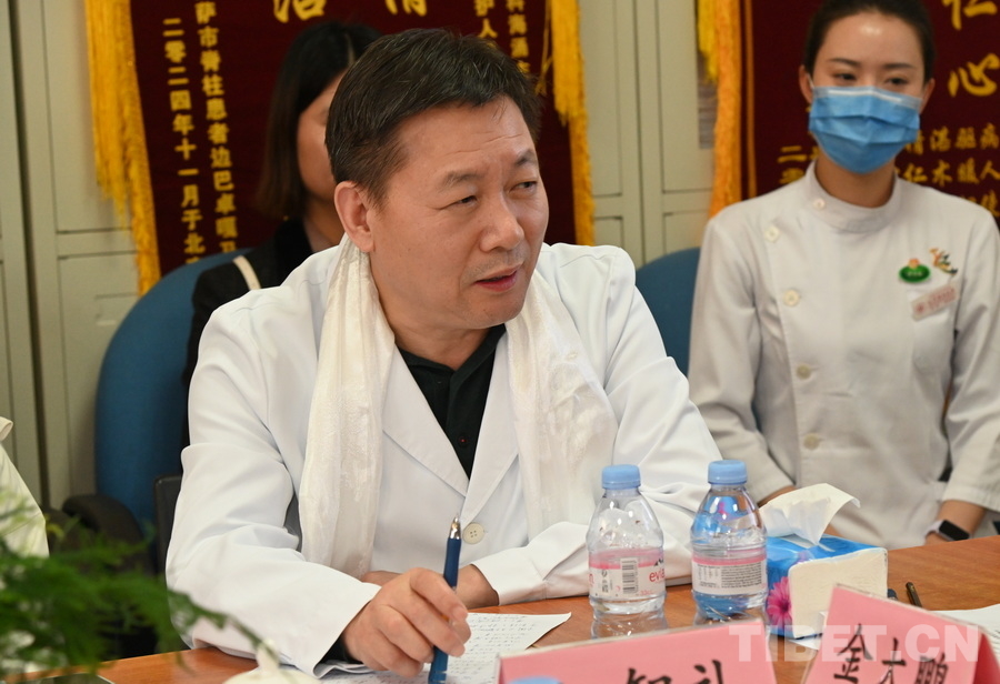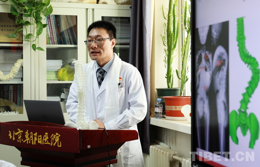 圖為北京朝陽醫(yī)院骨科主任、首都醫(yī)科大學(xué)骨外科學(xué)系主任、國際腰椎研究學(xué)會候任主席海涌介紹該院骨科團(tuán)隊(duì)在救治高海拔地區(qū)脊柱側(cè)彎患者方面所做的工作 攝影:劉莉