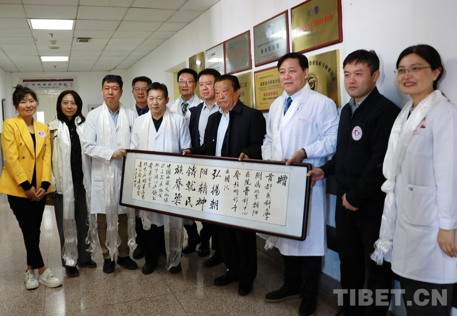 圖為中國西藏文化保護(hù)與發(fā)展協(xié)會、“同心·共鑄中國心”組委會、北京啟明星辰慈善公益基金會共同向北京朝陽醫(yī)院贈送牌匾 攝影:劉莉