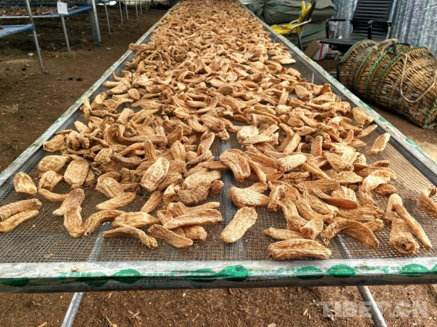 圖為紅太陽(yáng)科技示范家庭農(nóng)場(chǎng)大棚里晾曬的天麻 攝影:王淑