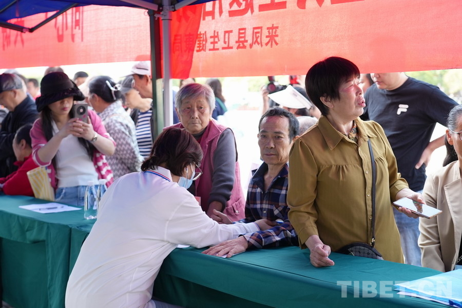 中國(guó)西藏網(wǎng)訊 4月18日,“同心·共鑄中國(guó)心”大型公益醫(yī)療服務(wù)活動(dòng)走進(jìn)湖北省恩施土家族苗族自治州來(lái)鳳縣。來(lái)自北京的10名醫(yī)療專(zhuān)家組成的聯(lián)合義診團(tuán)隊(duì),在喳西泰廣場(chǎng)為當(dāng)?shù)厝罕娞峁┙】底稍?xún)、疾病篩查及個(gè)性化診療服務(wù)?;顒?dòng)現(xiàn)場(chǎng),專(zhuān)家們耐心解答群眾健康問(wèn)題,針對(duì)常見(jiàn)病、慢性病進(jìn)行細(xì)致篩查,并提出專(zhuān)業(yè)診療建議。(中國(guó)西藏網(wǎng) 記者/蘇洋)