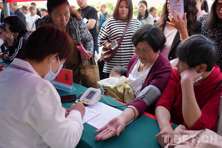 圖為王蘋(píng)醫(yī)生為群眾測(cè)量血壓 攝影:蘇洋