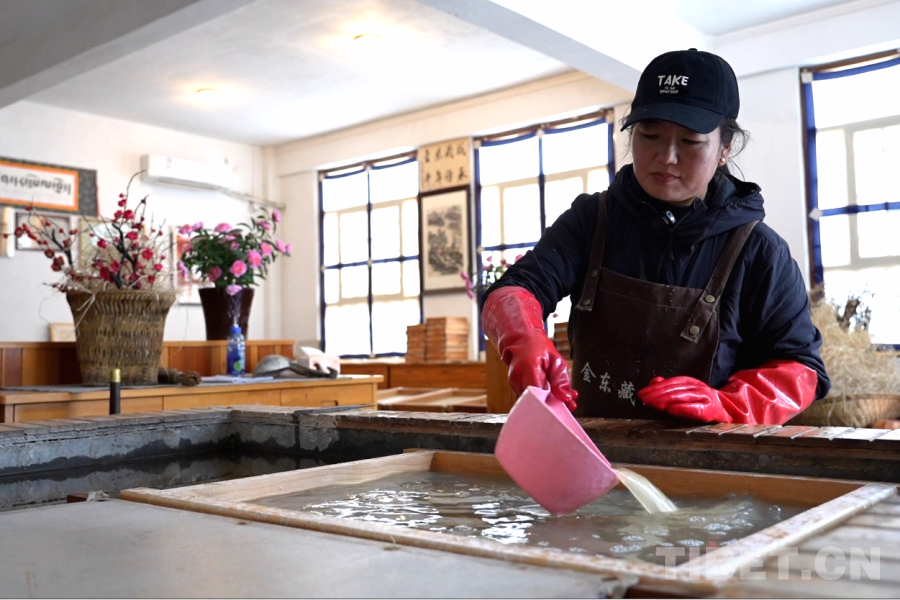 在政府和工匠們不懈地保護(hù)發(fā)揚(yáng)下,金東藏紙重?zé)ㄉ鷻C(jī)。2013年,“金東藏紙制造技藝”被納入自治區(qū)級(jí)非物質(zhì)文化遺產(chǎn)名錄,朗縣投入100萬元用于金東藏紙改擴(kuò)建項(xiàng)目;2017年,金東藏紙獲評(píng)中國特色旅游商品,深受國內(nèi)外人士喜愛;近年來,金東藏紙制造技藝已基本恢復(fù)工藝流程,2024年政府再次投入資金20萬用以購買造紙?jiān)O(shè)備。