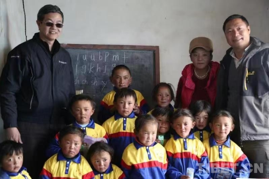 圖為陳人杰(右一)與西藏孩子們在一起 受訪者供圖