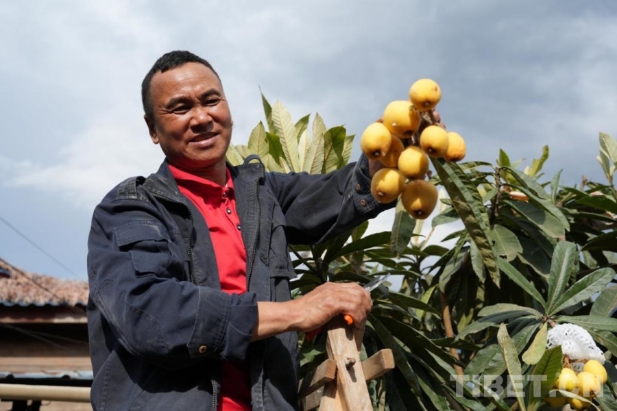 嘎繞多杰雖然學(xué)得淺,但種出可口的枇杷果實(shí)已經(jīng)沒(méi)問(wèn)題??粗狡律献约蚁ば恼樟系蔫凌藰洌χ骸拌凌耸找婧茫依镞€有三畝地,都想拿來(lái)種枇杷。”