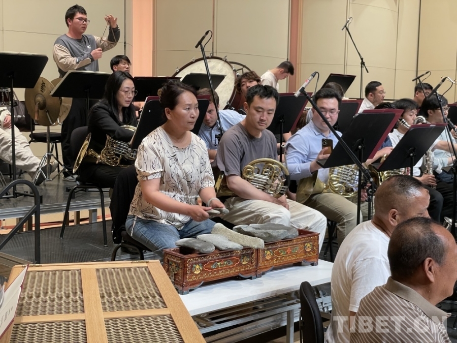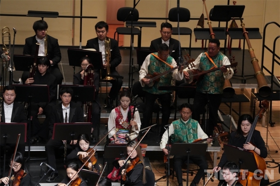 中國西藏網(wǎng)訊 為慶祝西藏自治區(qū)成立60周年,5月26日,中央音樂學(xué)院交響樂團(tuán)和西藏自治區(qū)歌舞團(tuán)民族樂團(tuán)在北京聯(lián)袂演奏西藏原創(chuàng)交響樂《祖國的西藏》。在音樂廳現(xiàn)場,西藏傳統(tǒng)樂器和西洋樂器的合奏,時(shí)而婉轉(zhuǎn)悠揚(yáng),時(shí)而激昂澎湃,盡展東方旋律之美,為聽眾們奉上一場別開生面的視聽盛宴。