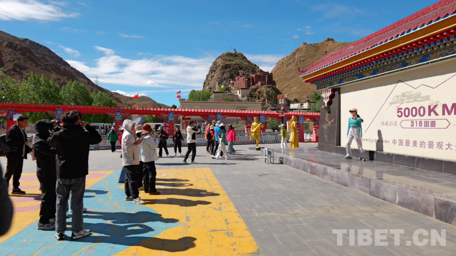 日喀則市拉孜縣強公村位于318國道5000公里處,這里是游客們前往珠峰景區(qū)的必經(jīng)之地,也被稱為“3185旅游服務(wù)區(qū)”。日前,記者在這里看到,有大批游客選擇在村口的318國道5000公里紀念碑前打卡。