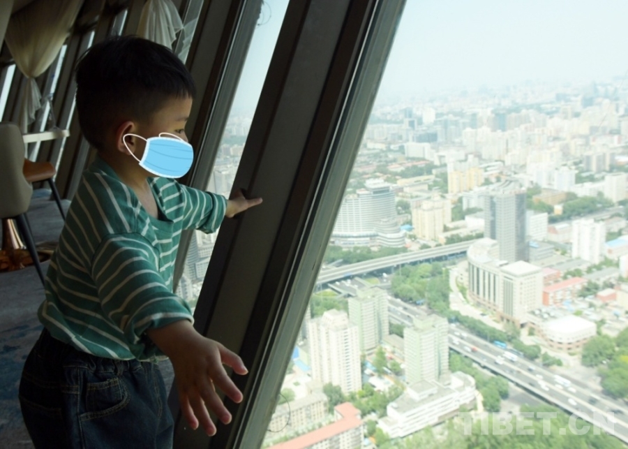 圖為小卓瑪在中央電視塔觀景臺 攝影:唐召明