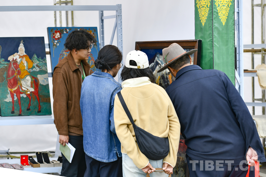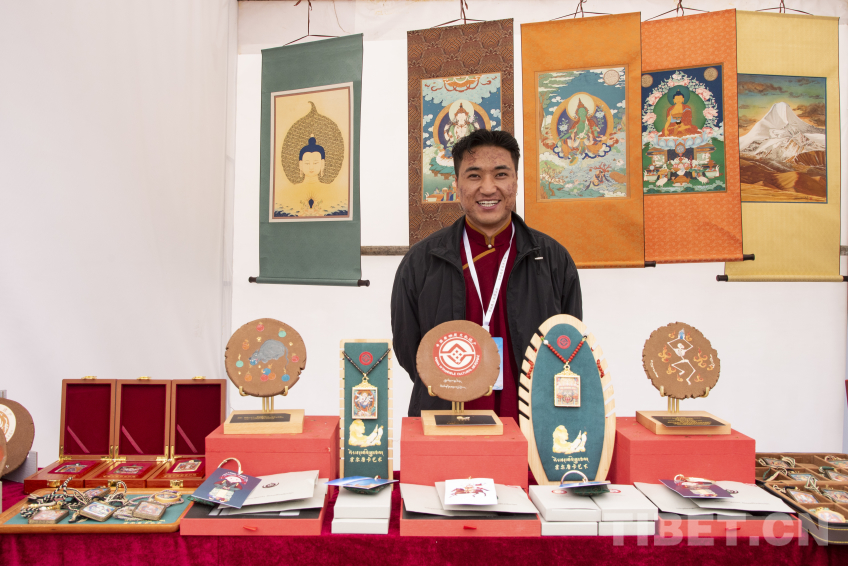 在集市的另一頭,是昌都市瑪吉阿媽唐卡畫院所展出的唐卡漆畫。“漆畫具有繪畫和工藝的雙重屬性。我們畫院主要是傳承嘎瑪嘎赤畫派的藝術作品,但近年來我們將傳統(tǒng)畫派藝術和福建漆畫進行了有機結合,以漆畫的工藝結合唐卡的審美,創(chuàng)作出一系列作品。這些唐卡漆畫不僅在西藏很受歡迎,也有其他省份的人士向我們定制?!倍嗉嬖V記者,每一件唐卡漆畫都融合了西藏傳統(tǒng)故事、傳說等文化內涵,不僅是一件藝術品,更是向外界展示西藏優(yōu)秀傳統(tǒng)文化的窗口。