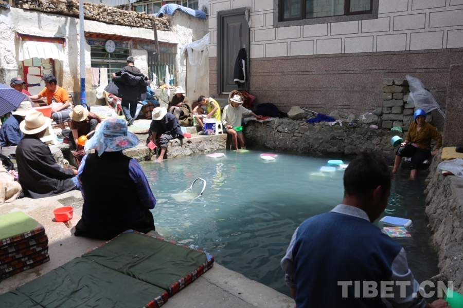圖為從謝通門縣達(dá)那答鄉(xiāng)頂嘎村來泡溫泉的群眾