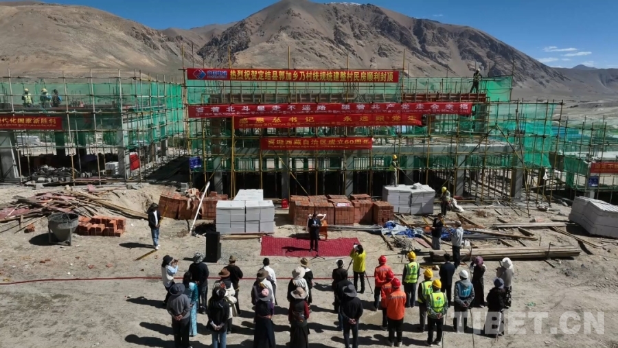 面對海拔4300多米的高寒缺氧、烈日風(fēng)沙,施工團(tuán)隊(duì)日夜奮戰(zhàn),克服重重困難,終于如期完成了全村民房的主體建設(shè)。乃村村民阿瓊說:“經(jīng)施工團(tuán)隊(duì)和各方努力,我家二層住宅今日順利封頂!施工全程進(jìn)度、質(zhì)量、安全均把控到位,成果令人欣喜。特別感謝施工負(fù)責(zé)人與工人們!”
