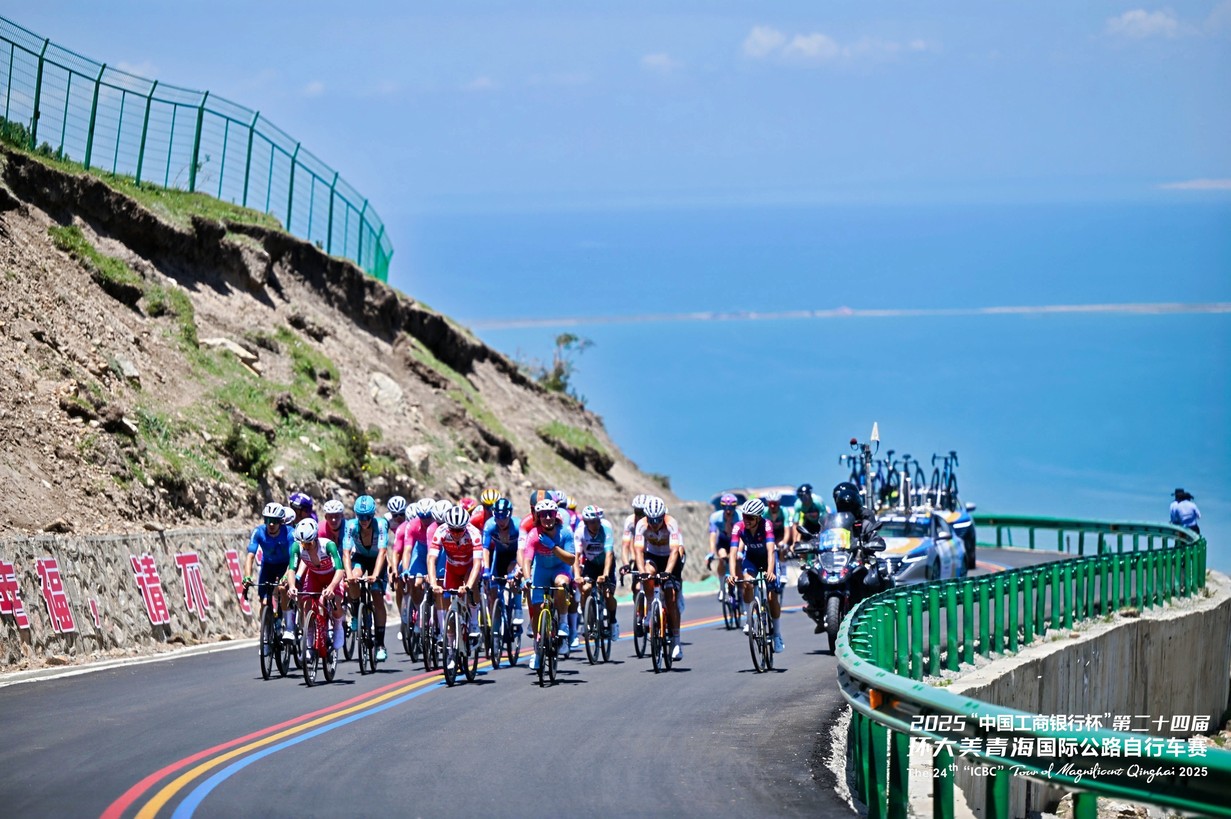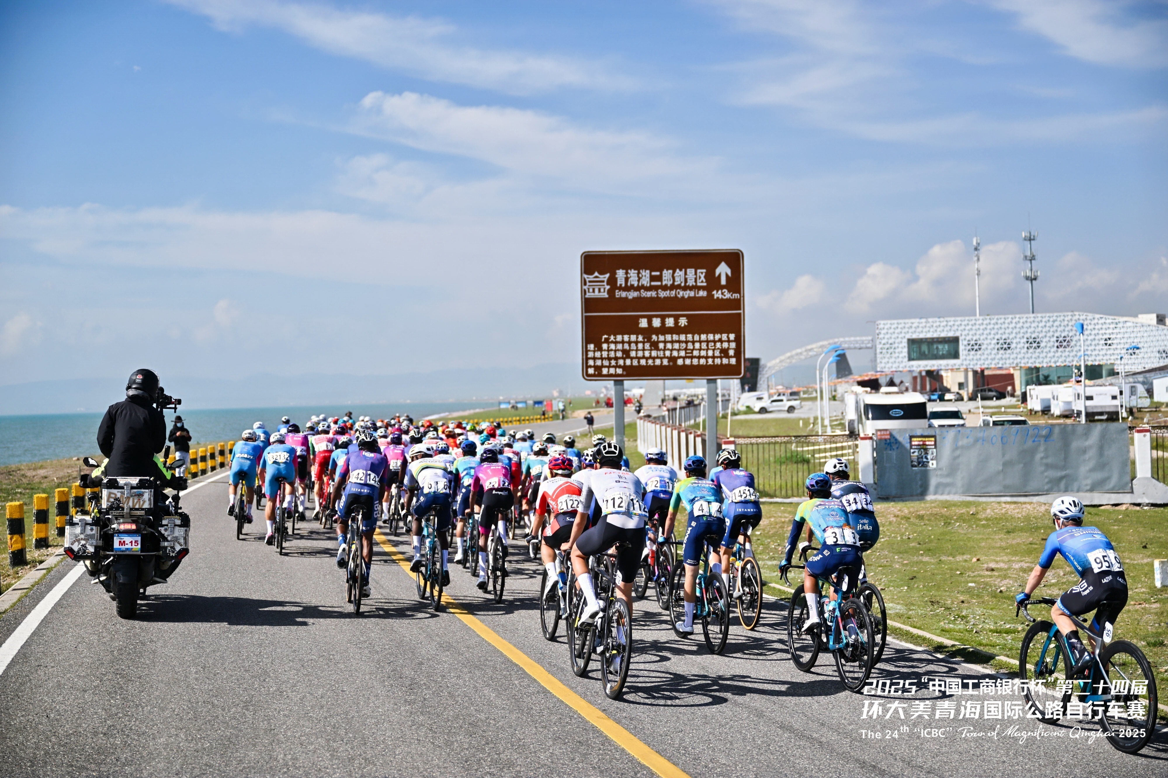 第二十四屆環(huán)青賽第六賽段——?jiǎng)偛?共和賽段,是本屆賽事距離最長(zhǎng)的賽段。車(chē)隊(duì)出發(fā)后不久便駛?cè)胫沫h(huán)湖公路,這段標(biāo)志性賽程承載著環(huán)青海湖賽事的精髓和回憶。作為環(huán)青賽的前身,環(huán)湖賽段以其獨(dú)特魅力吸引著全球騎行愛(ài)好者,人們沿著賽事路線打卡騎行,盡情領(lǐng)略青海湖畔的壯美風(fēng)光。