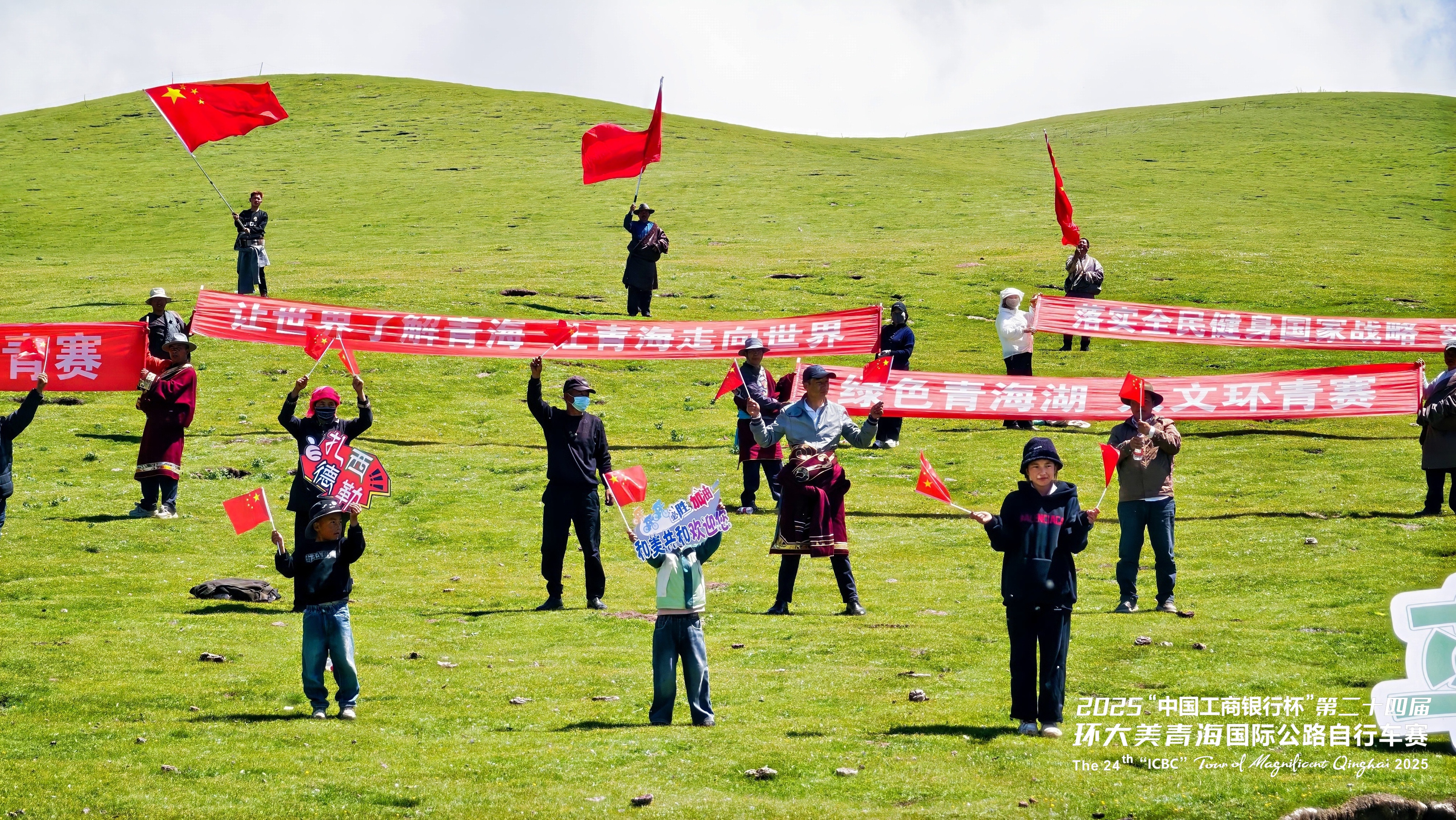 圖為環(huán)青賽期間,沿途的群眾、小朋友們手持“讓世界了解青海 讓青海走向世界”“綠色青海湖 人文環(huán)青賽”等標(biāo)語(yǔ)的橫幅,用燦爛的笑容和真摯的歡呼,向世界展示著青海人民的開(kāi)放與好客,飄揚(yáng)的橫幅與歡呼聲交織,傳遞出這片土地對(duì)八方來(lái)客最熱烈的歡迎。