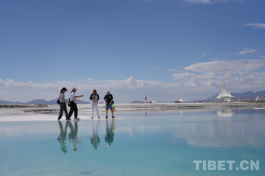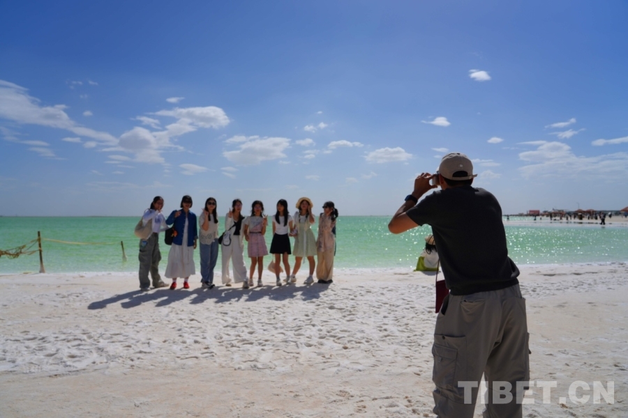 在海西蒙古族藏族自治州格爾木市,海拔2670米的察爾汗鹽湖,翠綠之美令人震撼,風(fēng)起波動,湖面如碎鉆鋪就的星河;天然形成的鹽花形態(tài)各異宛如珊瑚叢生,在陽光下,閃耀著璀璨的光芒;浮在鹵水上的“萬丈鹽橋”延伸至天際,橫跨湖面,還有周邊的現(xiàn)代化采鹽船,輸鹵管道,車來車往,工業(yè)設(shè)施與自然景觀形成強烈對比。來自妙法寺劉金龍中學(xué)三位女生欣賞著美景,也紛紛討論這次令人驚嘆的“自然課堂”。鐘澄情同學(xué)不自禁感慨:“這里跟網(wǎng)上宣傳的一樣美!就像是上帝打翻的蘋果汁?!痹袂缤瑢W(xué)驚嘆道:“曾經(jīng)我只聽說過茶卡鹽湖,來到這里才知道察爾汗鹽湖是中國最大、世界第二大的鹽湖,面積相當(dāng)于56個茶卡鹽湖,鹽儲量可以讓全球80億人吃上兩千年?!倍S馨月同學(xué)更加震撼這里工業(yè)與自然相互交融的獨特魅力,直呼這是一座真正的“寶庫”!