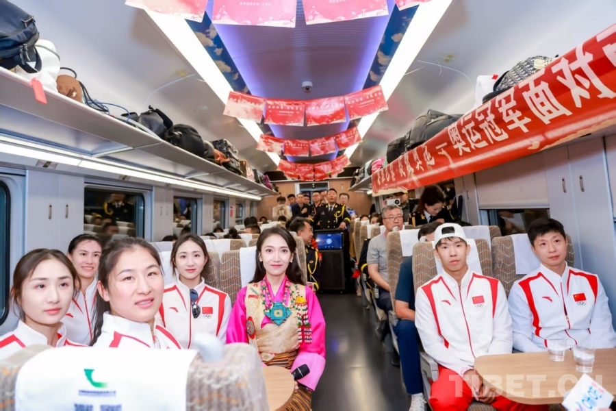 圖為7月19日,奧運(yùn)冠軍一行乘坐復(fù)興號前往西藏拉薩