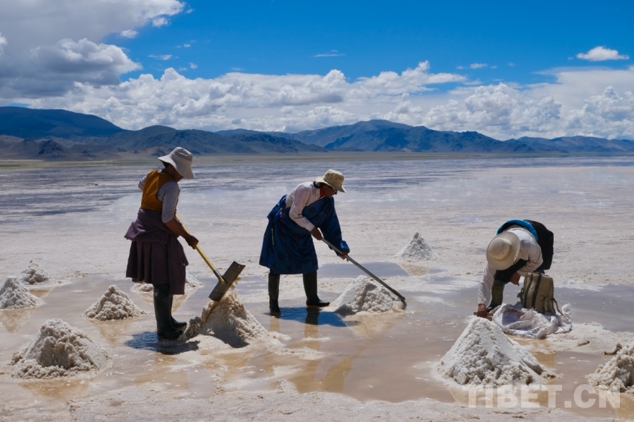 擦咔鄉(xiāng)素有“藏北鹽倉”之稱,其“章倉三湖”鹽礦資源豐富,采鹽史可追溯至千年前。古時,當地鹽幫以羊馱牛背的方式,將鹽巴運往普蘭、日喀則甚至印度、尼泊爾等地,形成了著名的“鹽羊古道”。這一傳奇不僅見證了當地群眾的智慧與勤勞,更在1951年支援先遣連進藏時發(fā)揮了重要作用,被譽為“革命的鹽、民族團結的鹽”。