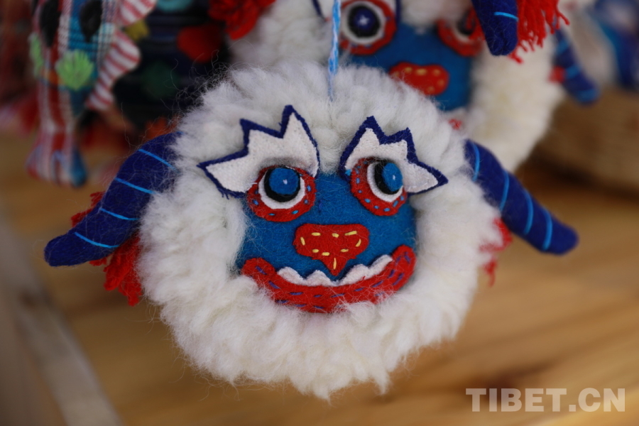 圖為夏扎大院里的“卓番林·措瓦”店陳列的手工雪怪掛件 攝影:劉莉