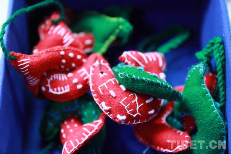 達(dá)娃片多介紹,店里大部分商品都是一針一線的純手工作品,制作者是來自西藏各地的群眾。公司會派出老師到西藏各地為群眾進(jìn)行手工藝品制作培訓(xùn),并提供原材料和手工藝品訂單,從而形成手工藝品產(chǎn)銷合作關(guān)系,幫助群眾增加收入。經(jīng)過近20年的堅持和探索,現(xiàn)在已經(jīng)有500多位西藏各地女性參與制作。