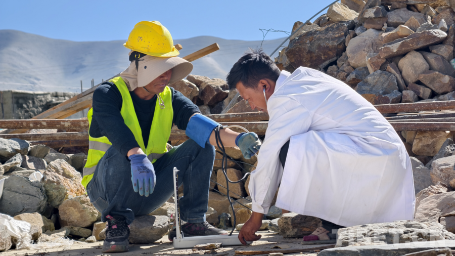 健康守護(hù)網(wǎng),筑牢重建防線。月初頂層澆筑時(shí),施工隊(duì)員老張不慎踩中鐵釘。駐村工作隊(duì)立刻協(xié)同村醫(yī)貢嘎旦增現(xiàn)場處置,全程跟蹤治療確保傷口未感染。貢嘎旦增的足跡遍布工地,開展健康服務(wù)5輪,測量血壓47人次,發(fā)放常用藥品30余份,覆蓋200余人。鄉(xiāng)衛(wèi)生院院長為19名群眾定制慢性病方案,藏醫(yī)拉姆的“呼吸調(diào)節(jié)法”更有效舒緩了70余人的心理焦慮。