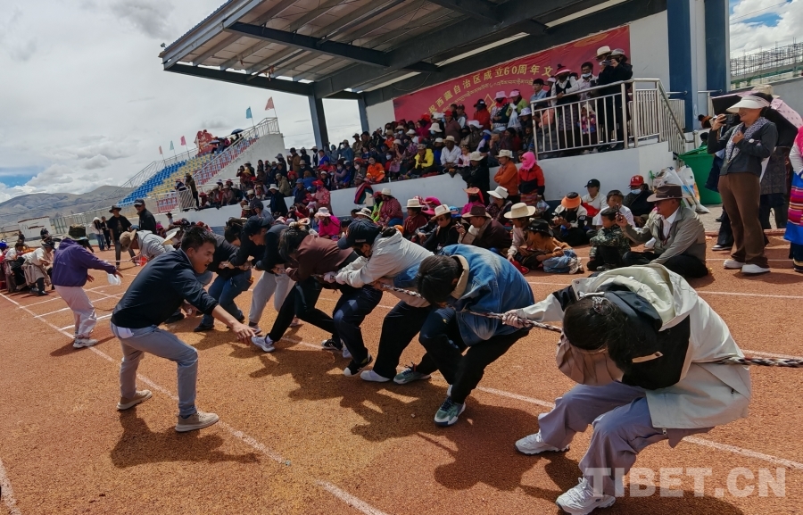 文藝演出落幕,文體活動(dòng)接棒升溫。100米、200米賽道上,選手們?nèi)珉x弦之箭,奔跑中揚(yáng)起的塵土里;拔河繩兩端,隊(duì)員們腳蹬大地、身向后仰,加油的號(hào)子聲震得地上的石子都在跳;抱沙袋、押加項(xiàng)目中,選手們咬緊牙關(guān)、全力拼搏,圍觀群眾的吶喊助威聲浪一波高過(guò)一波;穿藏服拌糌粑環(huán)節(jié),大家整理衣襟、系緊腰帶,青稞粉與礦泉水在手中交融,香氣里飄著“共話家?!钡臏厍椤宽?xiàng)活動(dòng)都是一次“心與心的對(duì)話”,讓團(tuán)結(jié)的種子在互動(dòng)中生根發(fā)芽。