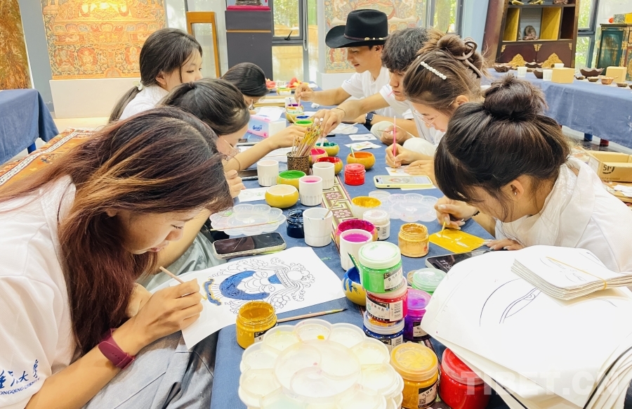 圖為重慶大學(xué)“格?;ā编l(xiāng)村振興調(diào)研實踐活動之藏式繪畫體驗 重慶大學(xué)供圖