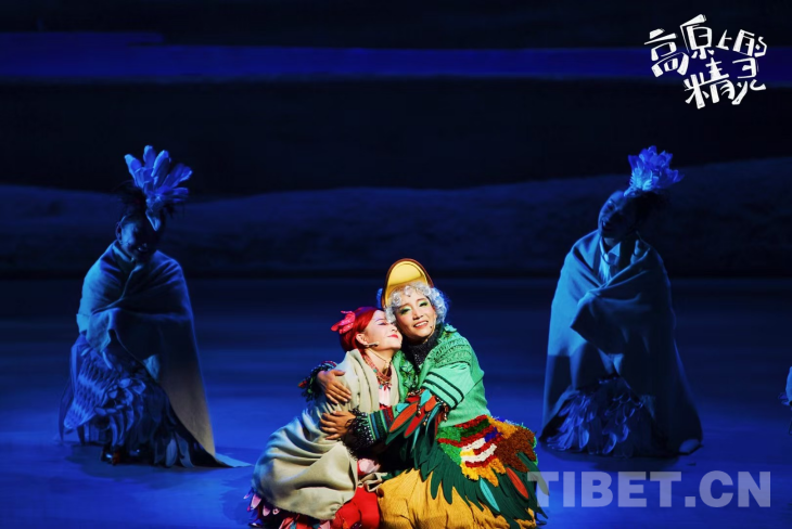 故事對“生態(tài)保護”的詮釋深刻且包容。它未將環(huán)境惡化歸咎于某一族群,而是通過母湖嚴寒、子湖干旱的對比,展現(xiàn)“生態(tài)系統(tǒng)無邊界”的現(xiàn)實:黑頸鶴需潔凈湖水,藏野驢需豐茂草原,均依賴子母湖的自然循環(huán)。當牦牛族用身軀為風雪中的鳥類擋寒,藏羚羊與黑頸鶴在重建的湖岸并肩眺望,舞臺上呈現(xiàn)的不僅是劇情的和解,更是對“團結協(xié)作守護家園”理念的生動演繹。劇中傳遞的協(xié)作精神,跳出了“人類中心”或“生態(tài)中心”的二元對立,體現(xiàn)了西藏傳統(tǒng)生態(tài)觀的系統(tǒng)性思維——保護珍稀物種是所有生命休戚與共的必然選擇,人與自然應是和諧共生的有機整體。