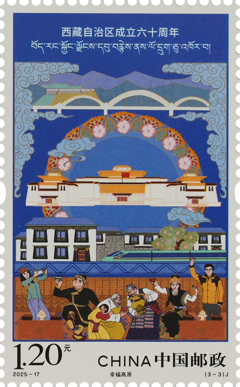 圖為《西藏自治區(qū)成立六十周年》紀(jì)念郵票之“幸福高原” 中國(guó)郵政西藏分公司供圖