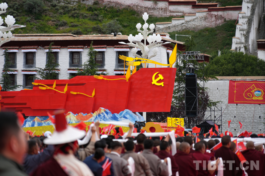 中國西藏網訊 西藏自治區(qū)成立60周年慶祝大會于8月21日上午10時在拉薩隆重舉行。伴隨著歡快的音樂,熱烈歡騰的群眾游行在“旗幟引領”彩車的帶領下正式開始。(中國西藏網 記者/王淑 馮重霖 劉莉 趙釗 姚浩然 楊眉笑 德吉卓瑪 趙振宇 賈華加 邊子捷 次旦拉姆 旦曲)