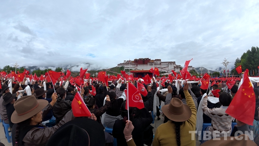 中國(guó)西藏網(wǎng)訊 紅旗招展,鮮花吐艷。8月21日上午,西藏自治區(qū)成立60周年慶祝大會(huì)在拉薩布達(dá)拉宮廣場(chǎng)隆重舉行,西藏各族各界干部群眾約2萬(wàn)人共同歡聚,熱烈慶祝西藏自治區(qū)成立60周年。