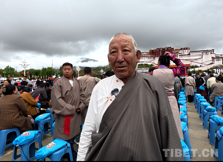 今日的布達(dá)拉宮廣場(chǎng)洋溢著濃厚的節(jié)日喜慶,慶?,F(xiàn)場(chǎng)化作一片歡樂的海洋。老年群眾精神矍鑠、笑容洋溢,眼中寫滿對(duì)當(dāng)下生活的滿足與對(duì)未來(lái)美好生活的憧憬。