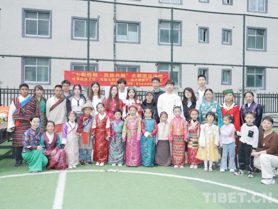 7月26日,亞東縣活動中心足球場熱鬧非凡。這是西部夢想實踐團聯合亞東縣群團工作部舉辦的“七彩假期·民族共融”活動。20余組親子家庭身著藏裝,在支教團老師與亞東縣群團工作人員引導下,共赴一場溫情文化之旅。