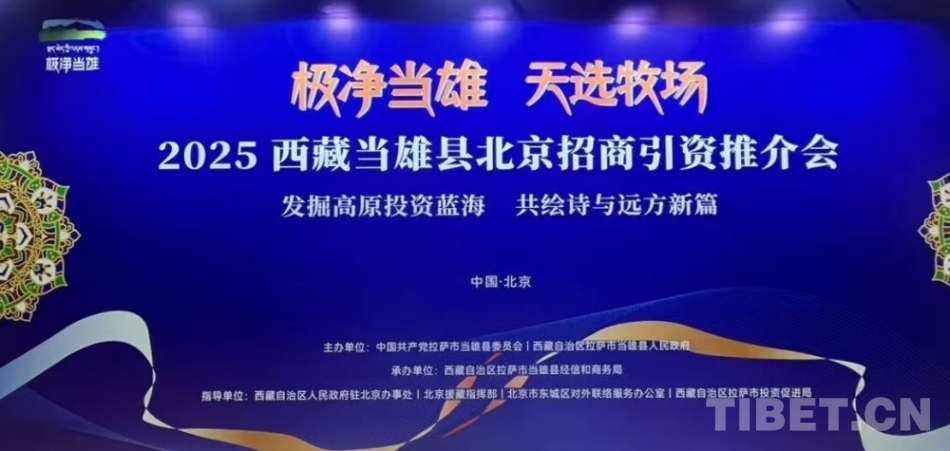 中國西藏網(wǎng)訊 9月8日,2025西藏當雄縣北京招商引資推介會在北京西藏大廈舉辦。推介會以“極凈當雄·天選牧場——發(fā)掘高原投資藍海,共繪詩與遠方新篇”為主題,由中共當雄縣委員會、當雄縣人民政府主辦,北京援藏指揮部、東城區(qū)相關部門聯(lián)合指導,吸引了來自北京及周邊等地的80余家企業(yè)代表參會。
