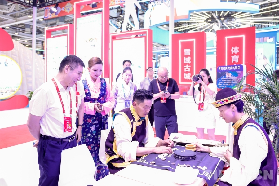 專業(yè)藝術(shù)團精心排演的《幸福西藏》節(jié)目在西藏展廳輪番展演;搭建響箭、秀茲(藏式骰子)體驗區(qū),高度還原世界海拔最高的龍舟賽——西藏自治區(qū)端午節(jié)牛皮船(龍舟)賽開幕式場景,吸引了廣大游客駐足觀看,踴躍參與民族傳統(tǒng)體育項目,參與“畫龍點睛”儀式。另外精心準備的體育文創(chuàng)產(chǎn)品,深受游客喜愛,爭相領(lǐng)取。