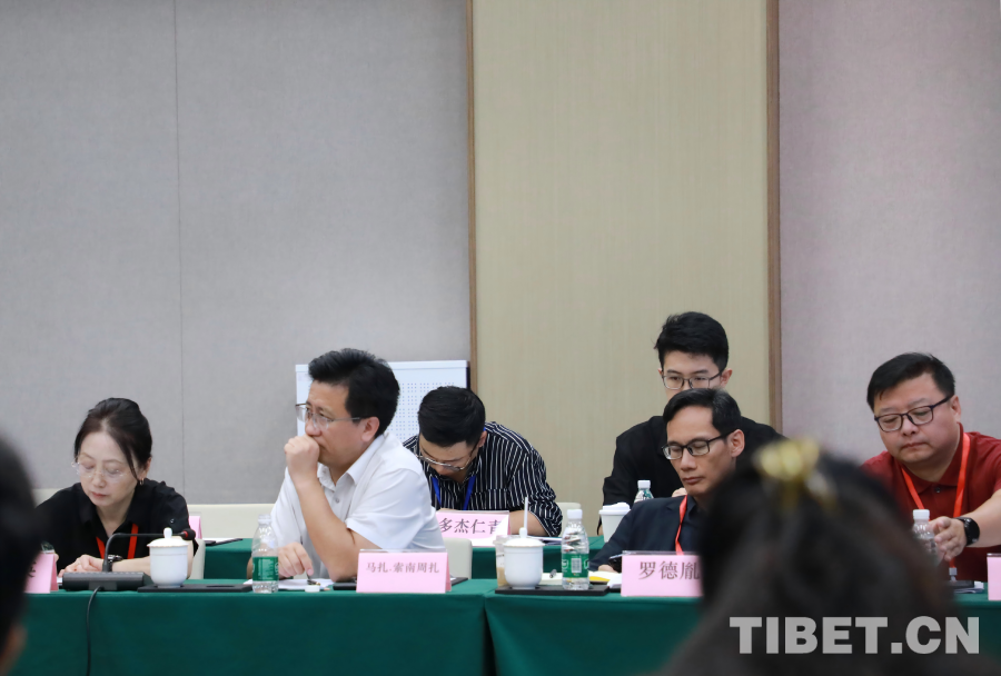 圖為馬扎·索南周扎(左二)在2025年8月北京相關(guān)座談會上聽取專家學者的交流分享 攝影:楊月云