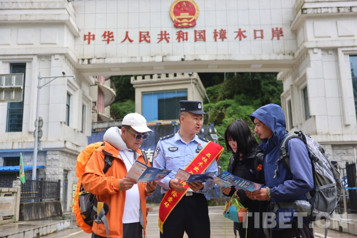圖為聶拉木邊檢站民警向口岸群眾講解網(wǎng)絡(luò)安全知識