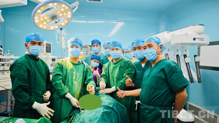 圖為那曲市人民醫(yī)院手術(shù)室內(nèi)成功完成全球首例海拔4500米以上5G遠程機器人手術(shù)