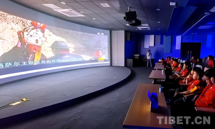 圖為西藏阿里噶爾縣孔繁森小學(xué)師生在山東聊城孔繁森精神教學(xué)基地觀看電影《孔繁森》 攝影:劉莉