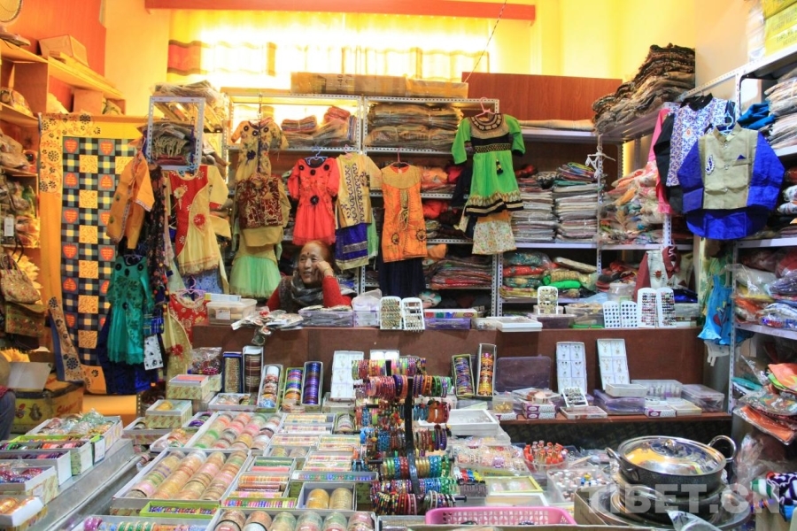 走進市場,濃郁的尼泊爾風格迎面而來。精致生動的手工藝品、各色各樣的尼泊爾服飾、夸張華美的首飾、風味多樣的香制品,構成了極具特色的商業(yè)品類。尤其是手工藝品,一個一價,各個不同,甚至有些瑕疵也不耽誤有顧客欣然購入。在這里,咖喱、巧克力、鍋具、糧食等生活用品也能買到,品類不可謂不豐富。尼泊爾店主們各有生意經,他們用不同的語言與不同的客戶交流,推銷著自己的特色商品,在討價還價中逐漸適應在異國經商,適應普蘭,適應現(xiàn)在安穩(wěn)滿足的生活。