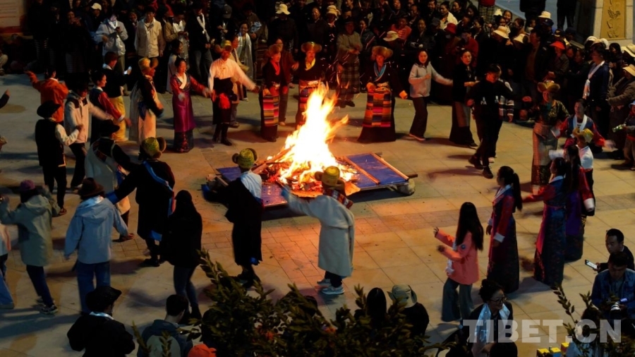 夜幕之下,沃卡溫泉景區(qū)篝火熊熊燃起,歌聲悠揚(yáng)回蕩。58名游客與60余名當(dāng)?shù)匮┌腿罕姎g聚一堂。在村民的熱情領(lǐng)舞下,眾人手拉手圍成圓圈,踏著歡快的節(jié)拍,共跳鍋莊舞。現(xiàn)場掌聲與歡呼聲此起彼伏,熊熊火光映照著一張張笑臉,桑日縣熱情好客的民風(fēng)與濃郁的民族文化氛圍感染著每一位在場者。