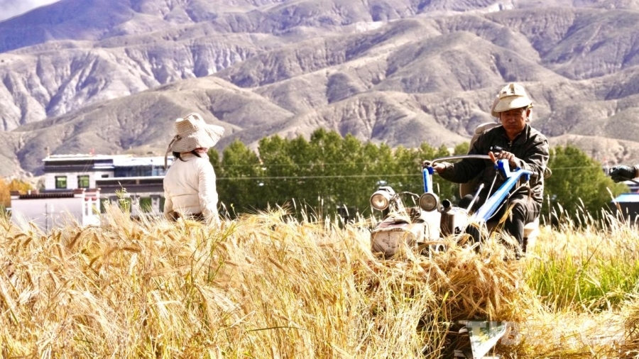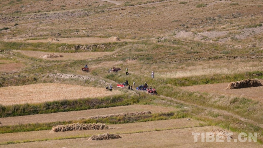 國(guó)慶前夕,得知家鄉(xiāng)開始秋收,我連夜趕回拉孜縣扎西崗鄉(xiāng)玉托村。沒想到,第二天清晨來(lái)到田邊時(shí),秋收已近尾聲。飛馳的車輪,終究沒能快過(guò)機(jī)械化時(shí)代家鄉(xiāng)的秋收速度