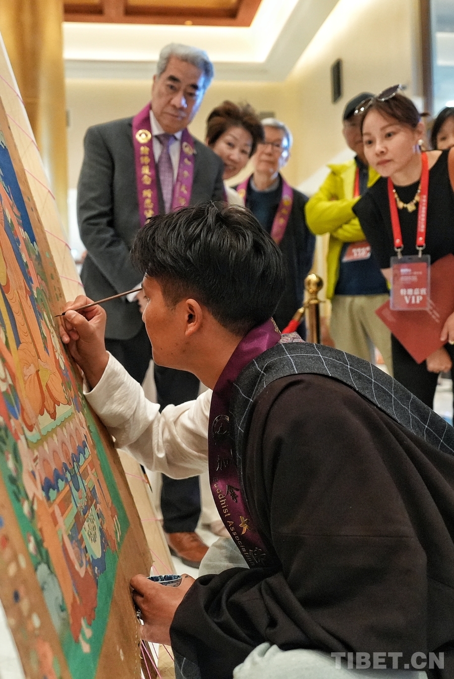 圖為唐卡技藝現(xiàn)場(chǎng)演示