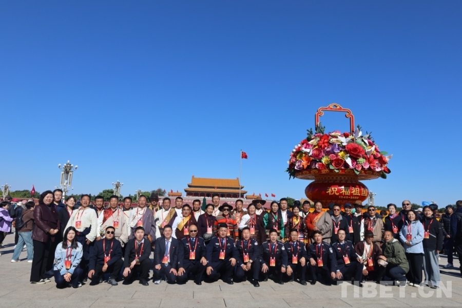 圖為西藏林芝波密縣基層干部在天安門廣場(chǎng)合影 攝影:陳玲玲