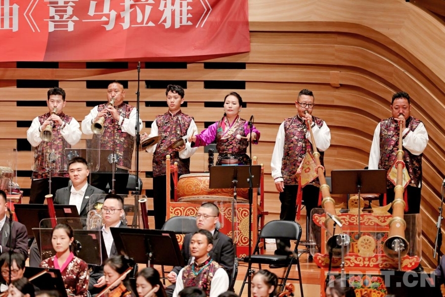 《喜馬拉雅》以世界屋脊的壯麗山河為背景,融合西藏傳統(tǒng)音樂(lè)元素與現(xiàn)代管弦樂(lè)創(chuàng)作手法,通過(guò)《緣起》《新生》《江河》《歡歌》《奔騰》《輝煌》等六個(gè)樂(lè)章,生動(dòng)展現(xiàn)了西藏自然景觀的雄奇、人文歷史的厚重以及新時(shí)代西藏各族人民的幸福生活。演奏中,扎念琴、鷹笛、嗶旺、西藏大號(hào)等西藏特色樂(lè)器與交響組曲交相輝映,既保留了傳統(tǒng)音樂(lè)的純凈悠遠(yuǎn),又賦予作品強(qiáng)烈的時(shí)代氣息,勾勒出一幅雪域高原生生不息的壯美畫(huà)卷。