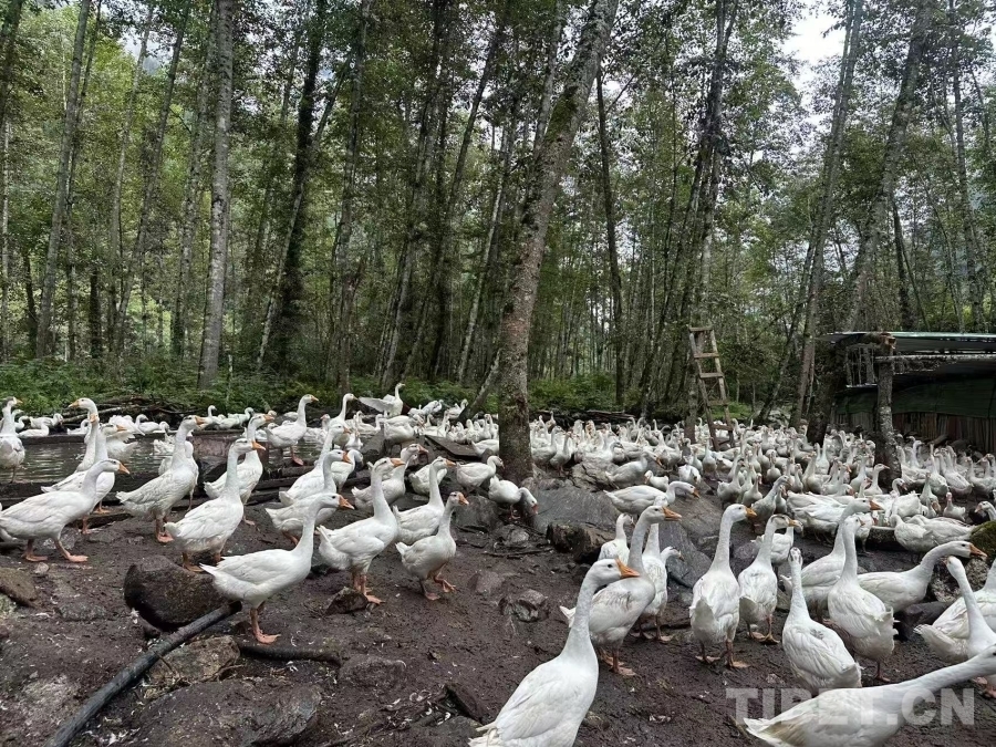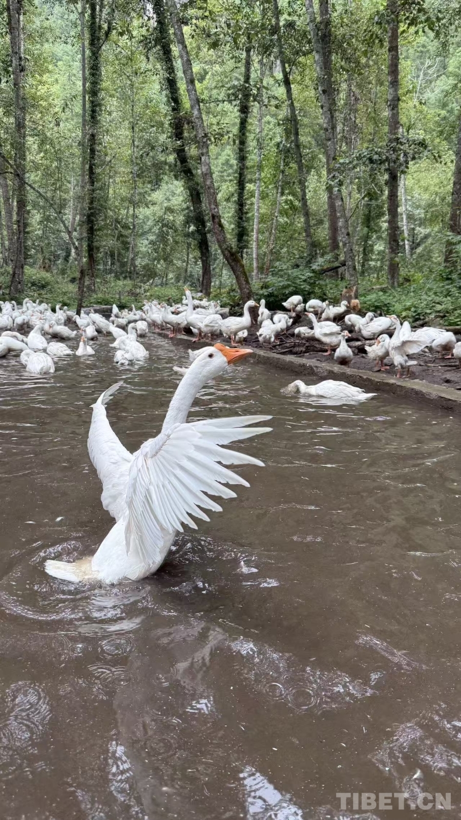 “嘎嘎——!”清晨,察隅的山霧還沒散盡,上察隅鎮(zhèn)珠聯(lián)村的山林間,上千只大白鵝已經(jīng)吵成一片。這些圓滾滾的“白團(tuán)子” ,或撲棱著翅膀在水塘中嬉戲,引吭高歌;或憨態(tài)可掬地在林間來回踱步,啄食雜草……把這個2024年10月才成立不久的搬遷新村,攪得熱鬧非凡。
