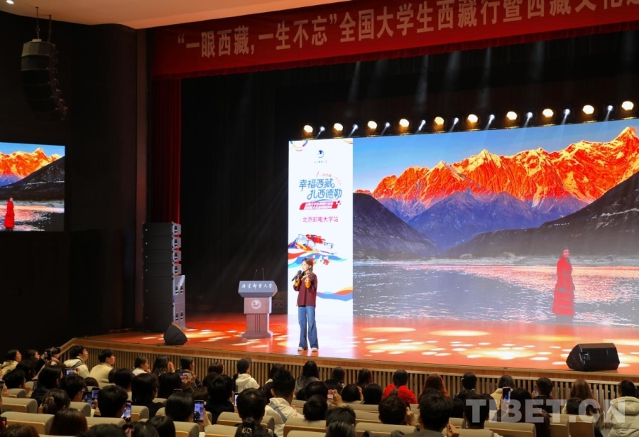 中國西藏網(wǎng)訊 “方程式是造物主獻(xiàn)給人類的詩篇,……每一個(gè)都給心里莊嚴(yán)感、靈魂感、畏懼感,你在西藏都能感受到這種(感覺)?!痹诒本┼]電大學(xué)科學(xué)會堂的舞臺上,中央廣播電視總臺主持人朱迅引用楊振寧先生的話,闡述了什么是她心中的西藏。10月30日,“一眼西藏,一生不忘”全國大學(xué)生西藏行暨西藏文化進(jìn)校園活動走進(jìn)了北京郵電大學(xué)。活動邀請朱迅作為分享嘉賓,將她與西藏的故事說與大家聽。