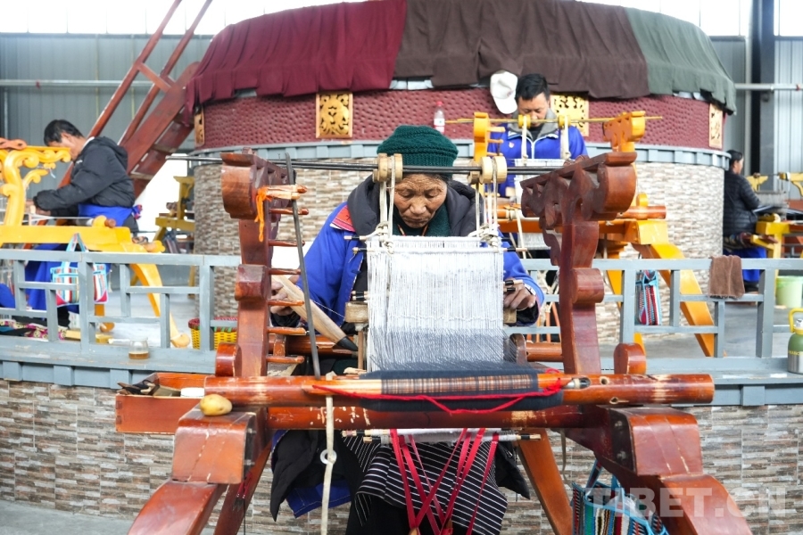 圖為在乃東區(qū)民族嘩嘰手工編織專(zhuān)業(yè)合作社的廠房中,員工正在編織 攝影:張藝彤