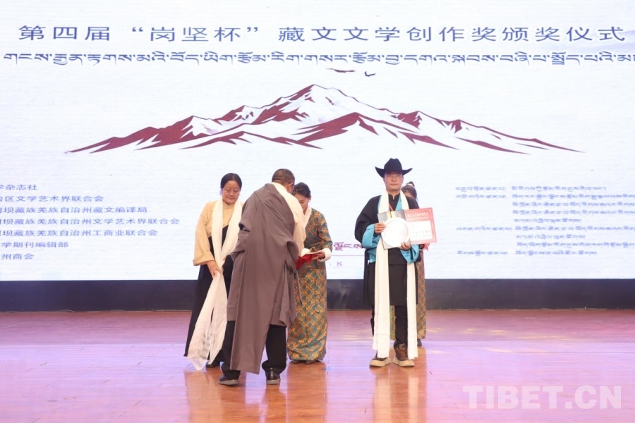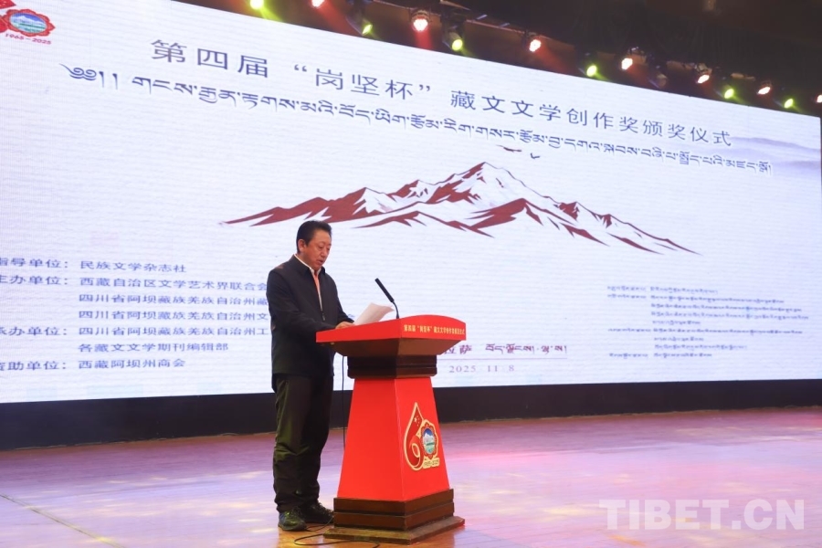 中國西藏網(wǎng)訊 11月8日,第四屆“崗堅杯”藏文文學(xué)創(chuàng)作獎頒獎儀式在拉薩舉行。來自北京、四川、青海、西藏等地的文學(xué)界代表、獲獎作者、藏文文學(xué)期刊主編及讀者代表齊聚一堂,共赴這場植根民族傳統(tǒng)、彰顯時代精神的文化之約,奏響新時代藏文文學(xué)守正創(chuàng)新的昂揚旋律。